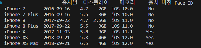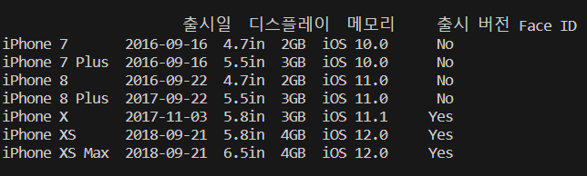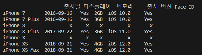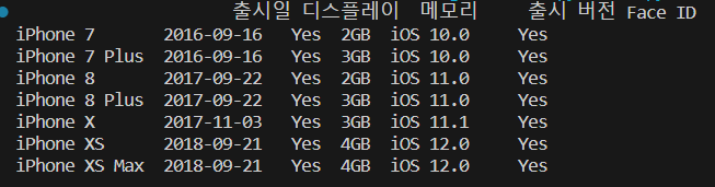iphone_df[['디스플레이','Face ID']] = 'Yes'