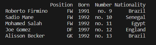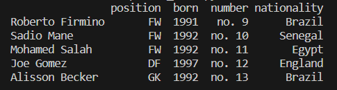 liverpool_df.rename(columns={'position' : 'Position', 'born':'Born', 'number':'Number', 'nationality':'Nationality' }, inplace=True)