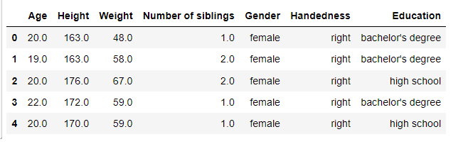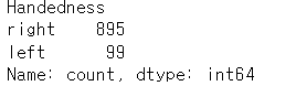 - 성별 / 우세 손 / 학벌 column 요소별 갯수