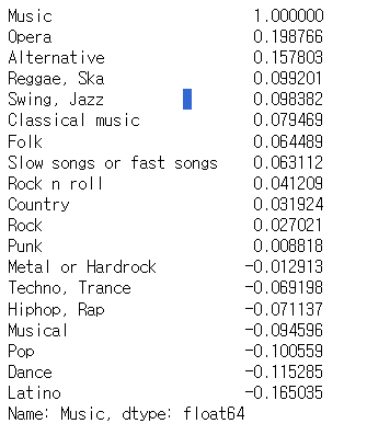 df.iloc[:,:19][early_waker].corr(numeric_only=True)['Music'].sort_values(ascending=False)