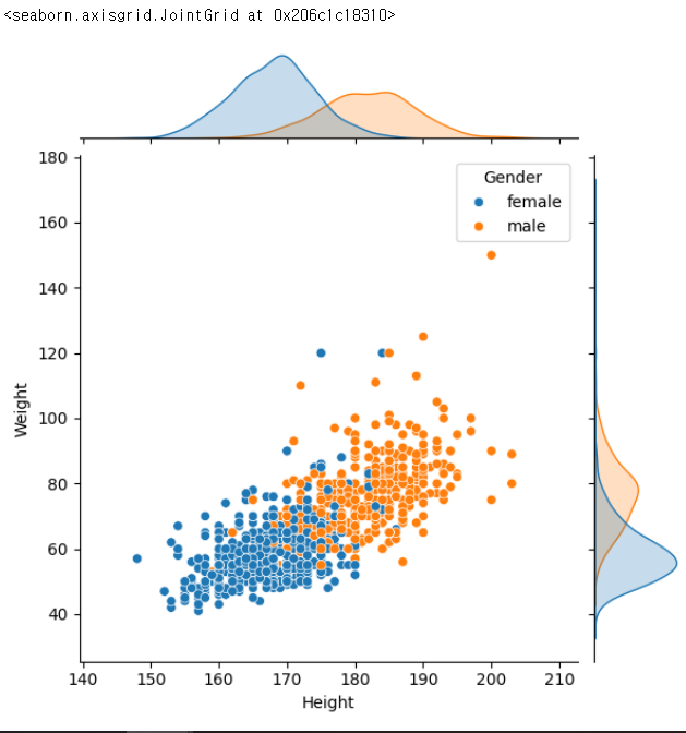 sns.jointplot(data=basic_info, x='Height', y='Weight', hue='Gender')