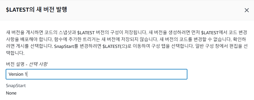 - 변경된 Lambda Function을 올리면 해당 버전이 $LATEST가 됨