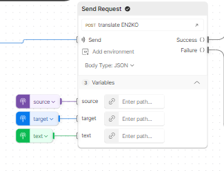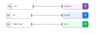 영어를 한글로 바꾸는 요청으로 문장은 hello test를 변수로 입력했습니다.